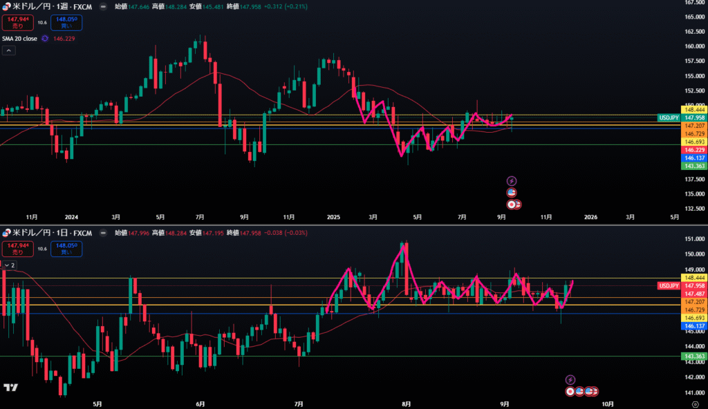 上黄色ラインは日足レジスタンスライン。