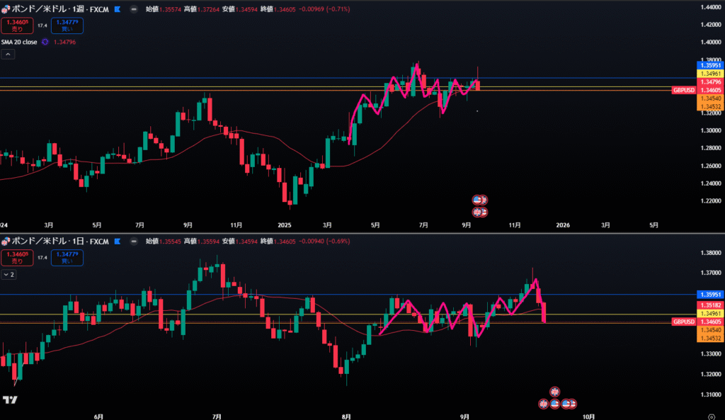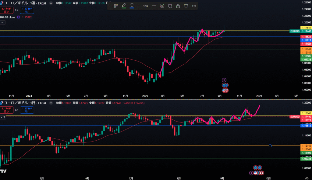上黄色ラインは日足レジスタンスライン。