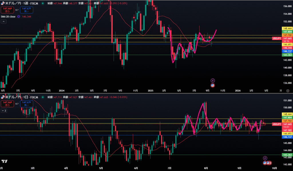 安値が日足移動平均線によって支えられている為狙うことはしたくない。