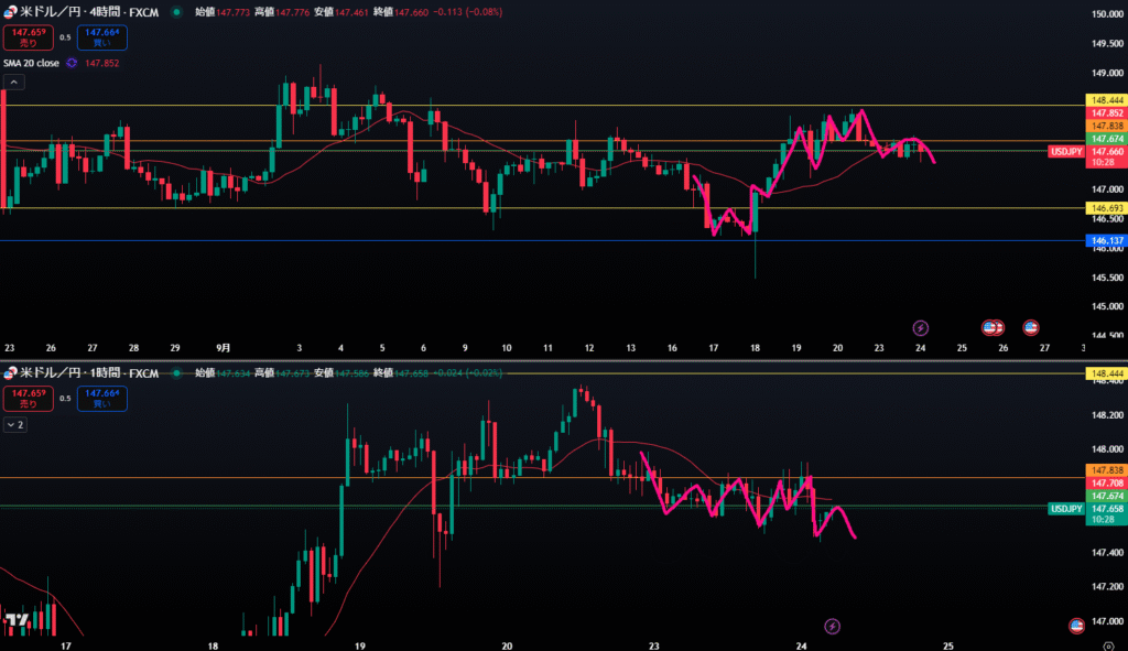 オレンジラインの下には4時間の押し目買い勢力がいる。