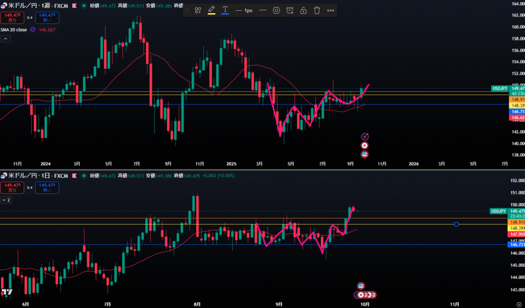 ピンクダウで見ると押し目買い勢力もいそうな気がする。