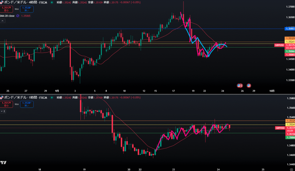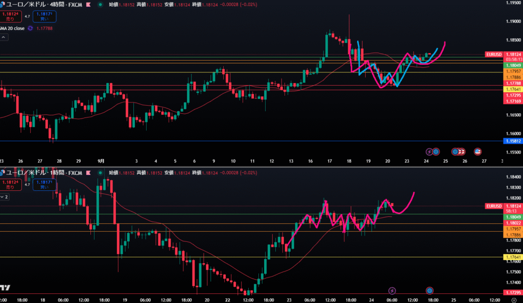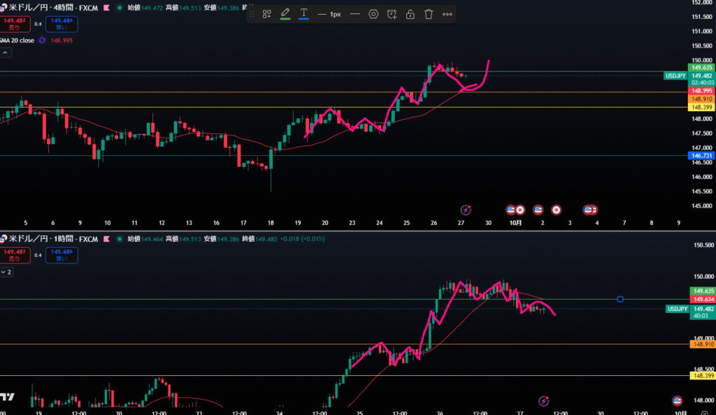 オレンジラインの下には4時間の押し目買い勢力がいる。