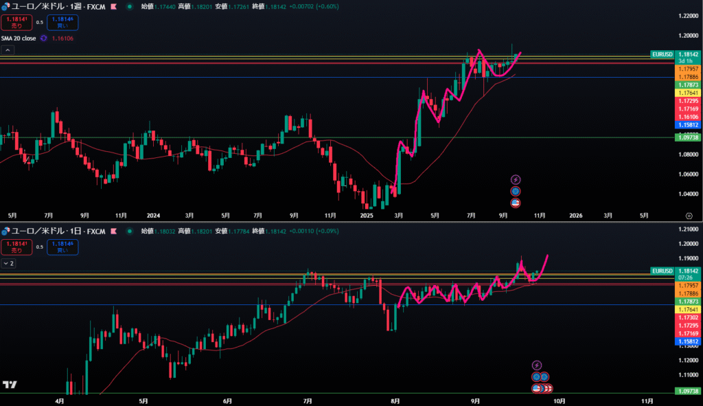 オレンジラインで止められているので4時間の押し目買いを狙っていきたい。