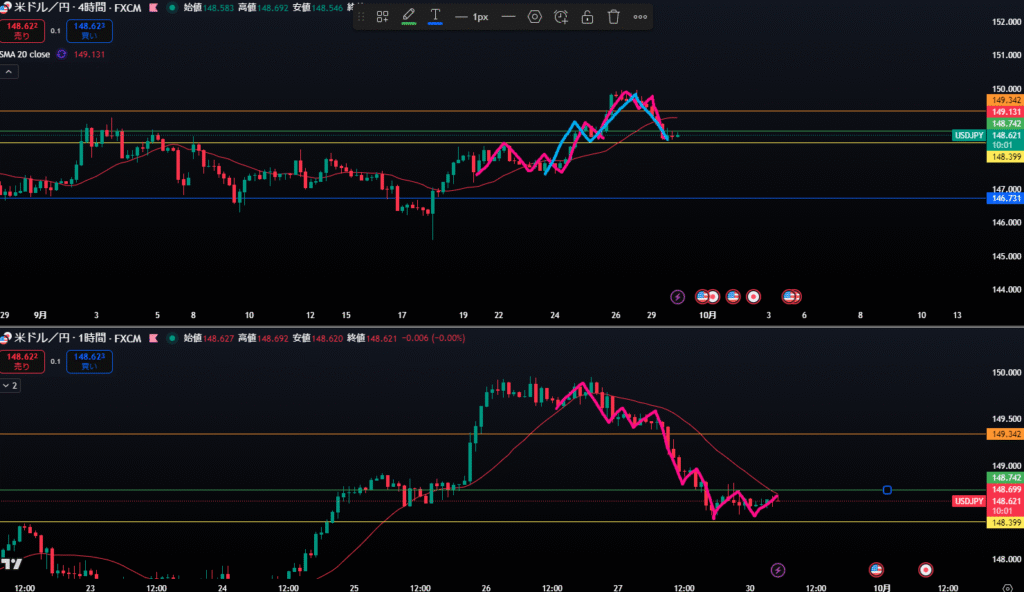 オレンジラインの下には4時間の押し目買い勢力がいる。
