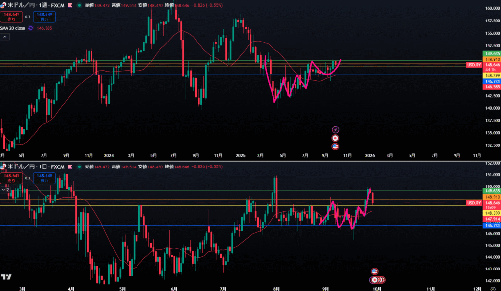 ピンクダウで見ると押し目買い勢力もいそうな気がする。