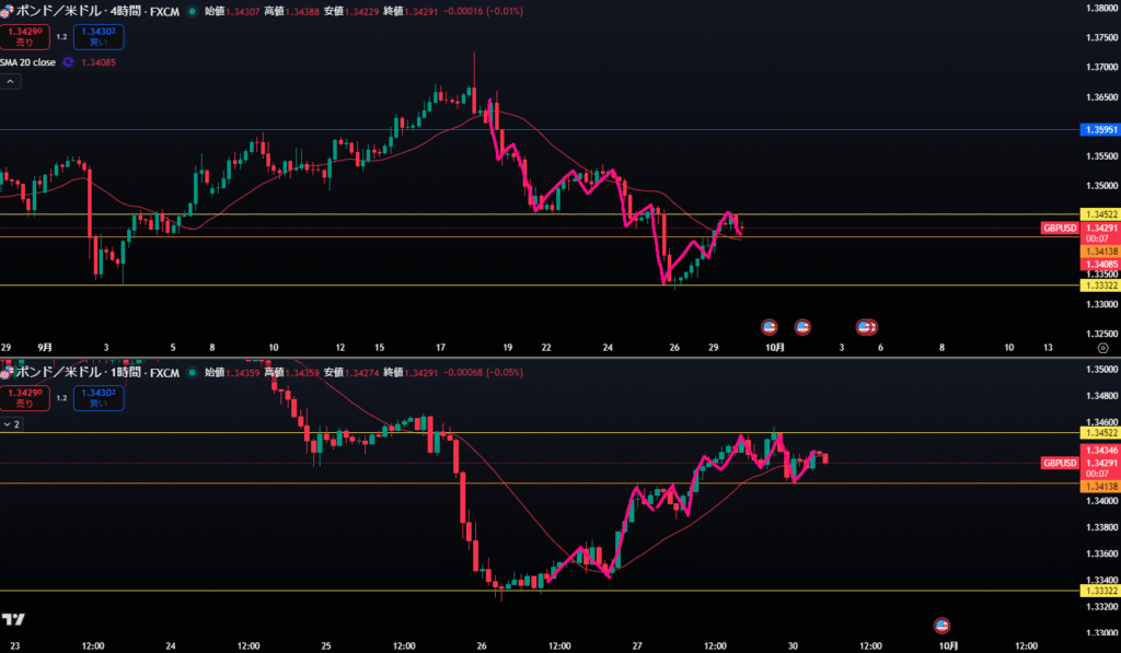 緑ラインの上には1時間の売り抑え勢力がいる。