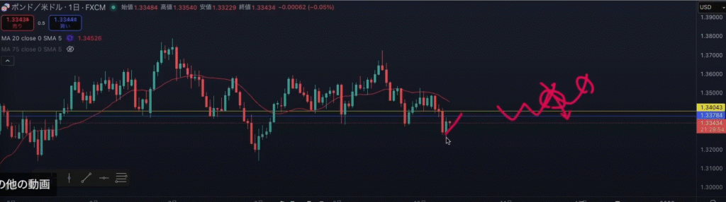 まずはオレンジラインに対し攻防ラインが出来てくるのを見ていきたい。
