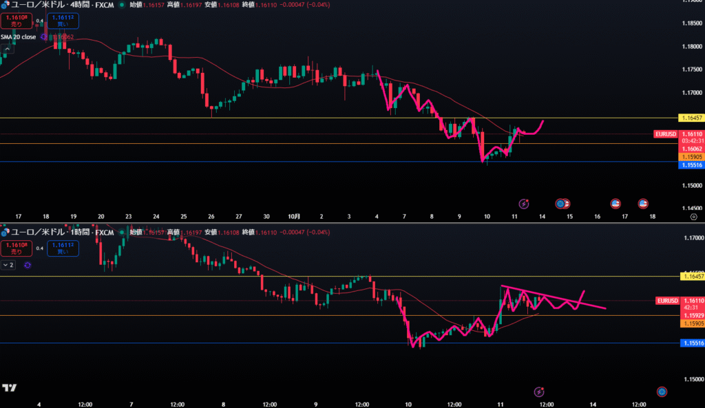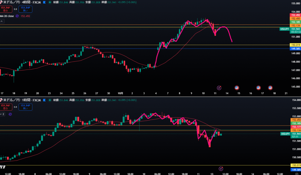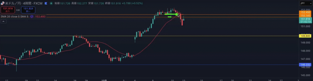 オレンジラインの下には4時間の押し目買い勢力がいる。