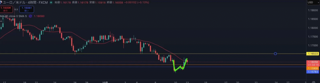 緑ラインの下には1時間の押し目買い勢力がいる。