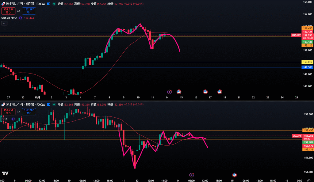 オレンジラインの下には4時間の買い支え勢力がいる。