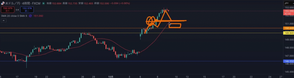 オレンジラインの下には4時間の押し目買い勢力がいる。