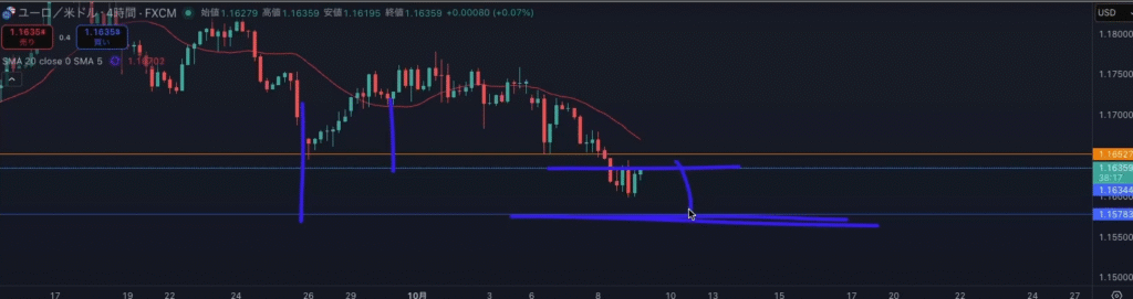 確かに日足見ると目標値まで来てるけれど、4時間がきれいに戻りをつけてきたら4時間安値までチャレンジするんじゃないの?と考えていた。