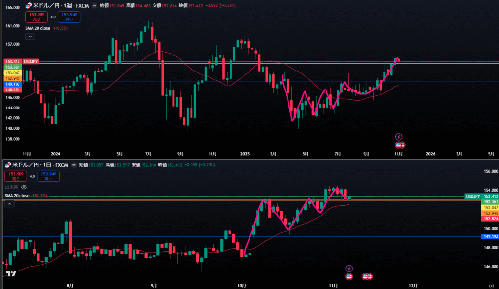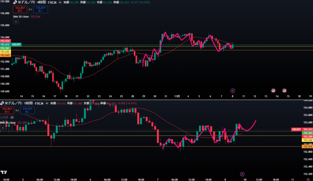 1時間の押し目買いになったとしても4時間の移動平均線で抑えられてしまう可能性もある。