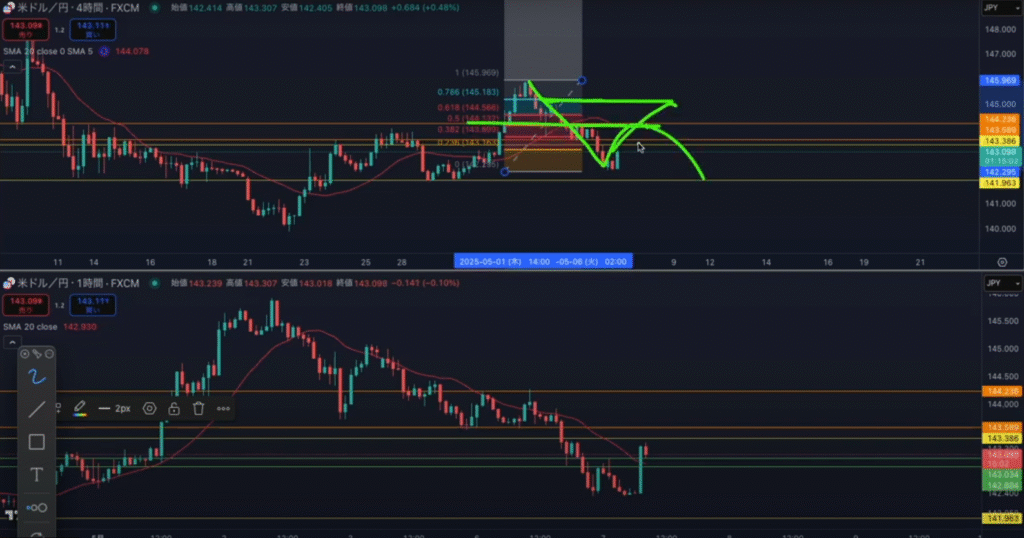 フィボも付け足してみてみるとより分かりやすい。