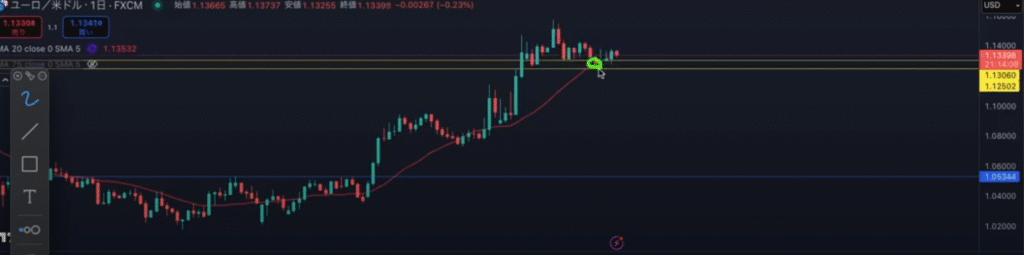 黄色いラインは日足サポートライン。