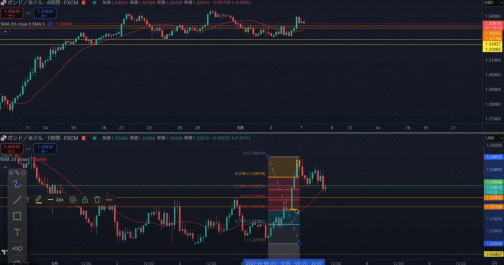 フィボも付け足してみてみるとより分かりやすい。